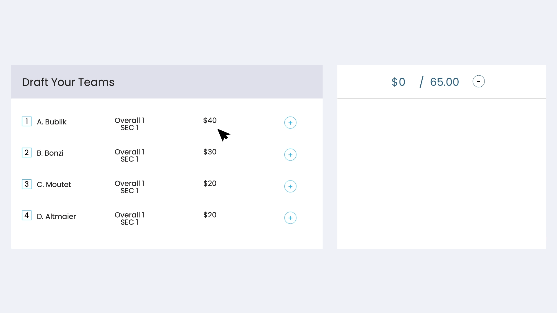 Unleash your inner tournament manager with our Fantasy Bracket game. Build your dream squad by strategically drafting teams based on their prices and expected performance. Accumulate points as your drafted teams conquer the tournament, and secure your spot at the top of the leaderboard. With a $1000 prize pool on the line, every win could lead you to fantasy bracket glory!